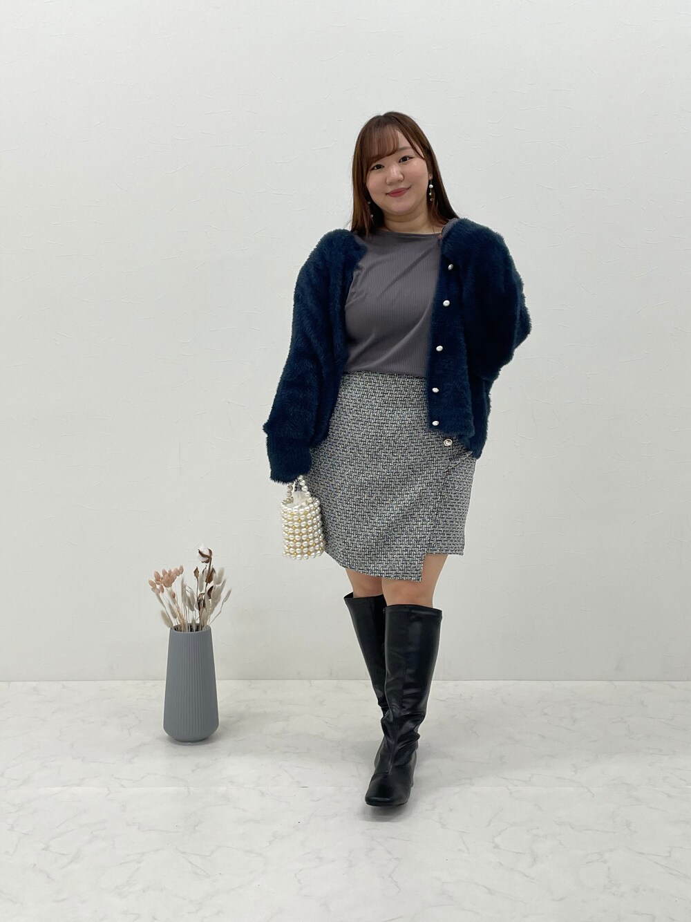 nissen Smile Models(nissen本店models)のカーディガン/ボレロ「<大きいサイズ> パール調ボタン付きシャギーニットカーディガン marun」を使ったコーディネート