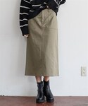 nissen Smile Models(nissen本店models)のTシャツ/カットソー「<大きいサイズ>長袖ボートネックリップルボーダーゆるカットソートップス」を使ったコーディネート