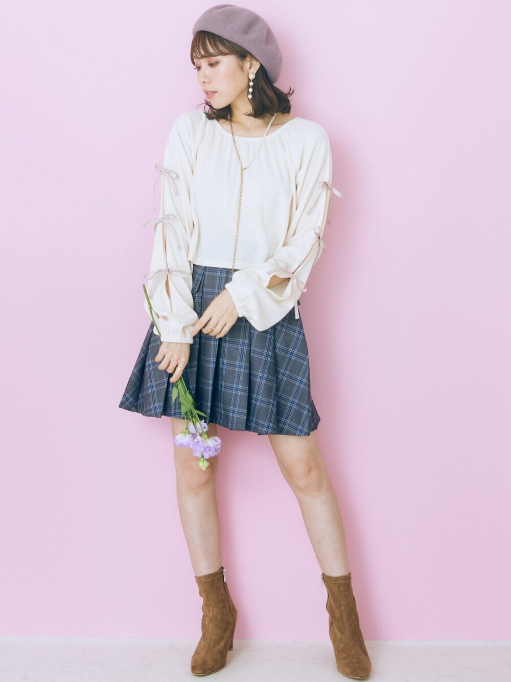 nissen Smile Models(nissen本店models)のその他パンツ「<大きいサイズ> チェックスカショーパン marun」を使ったコーディネート