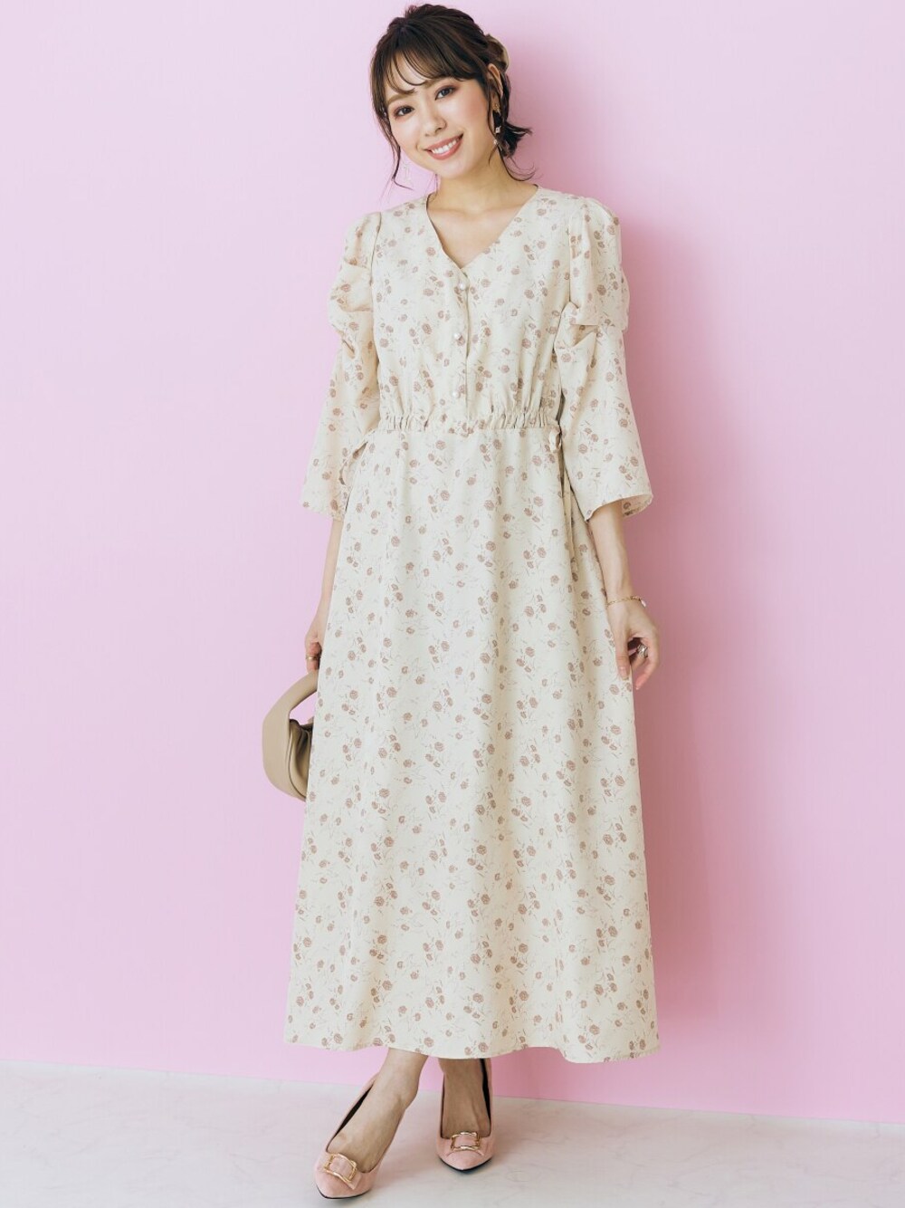 nissen Smile Models(nissen本店models)のワンピース「大きいサイズ花柄ワンピース marun」を使ったコーディネート