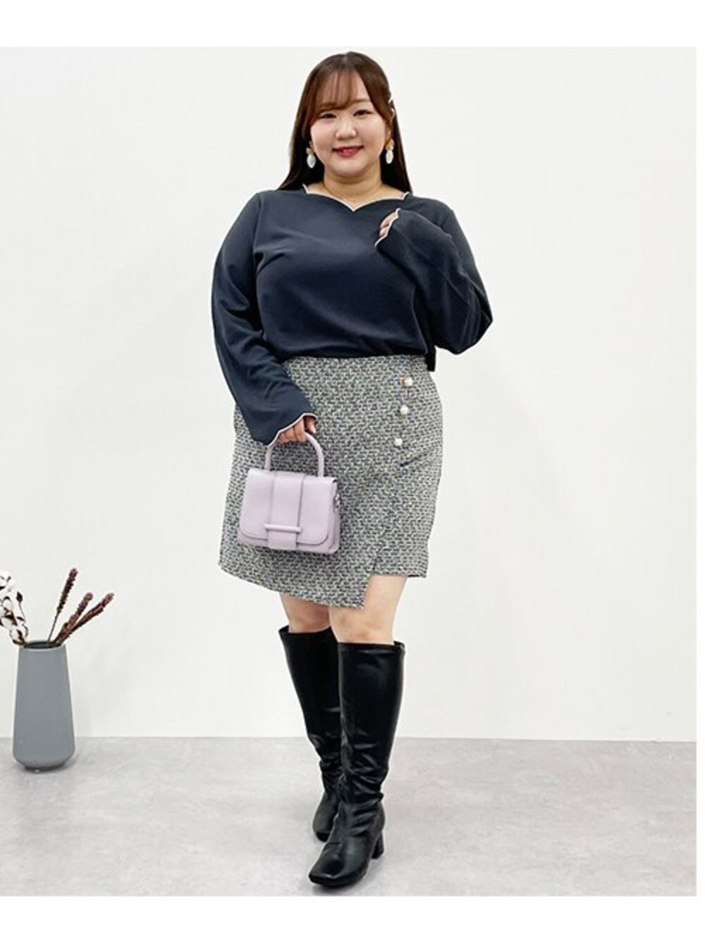 nissen Smile Models(nissen本店models)のその他パンツ「<大きいサイズ> ツイードラップスカート見えショートパンツ marun」を使ったコーディネート