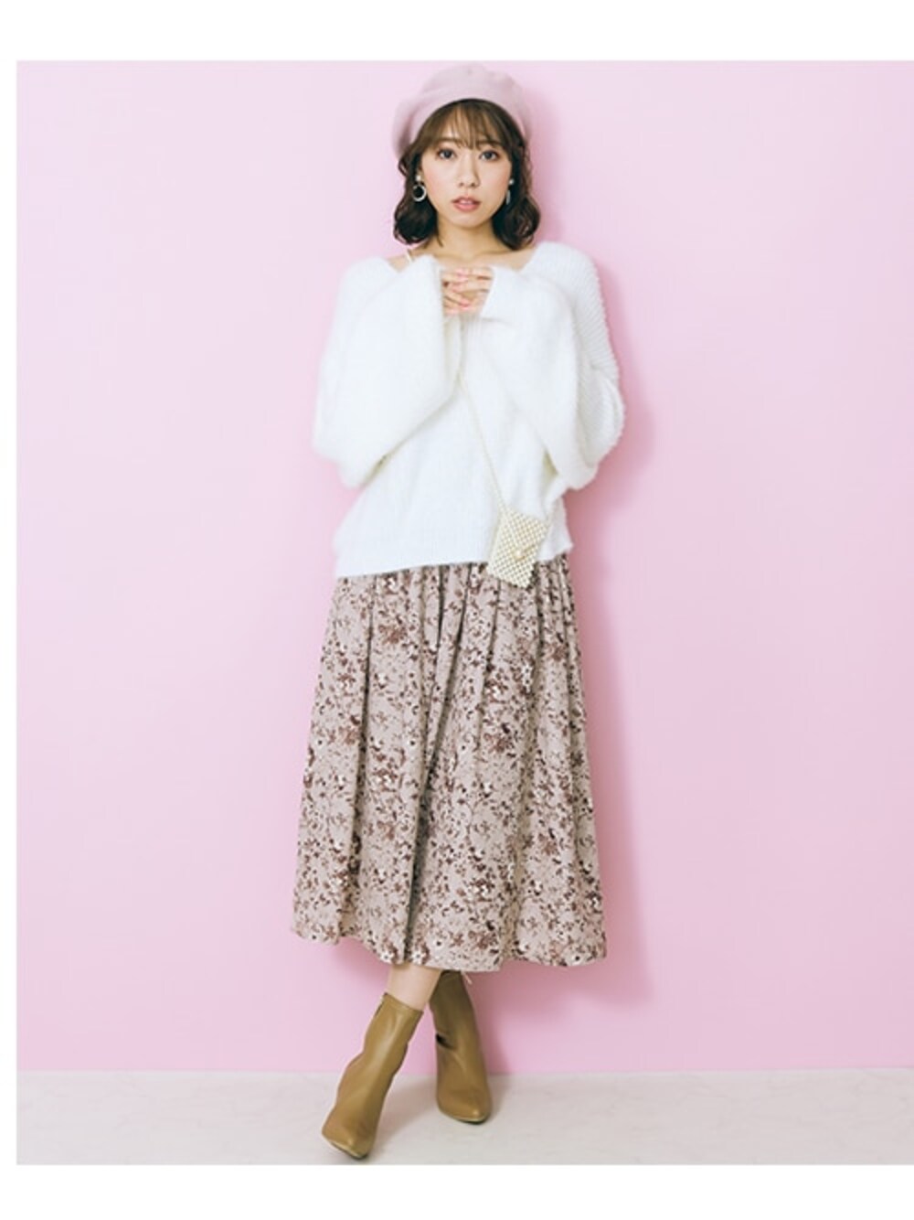 nissen Smile Models(nissen本店models)のスカート「<大きいサイズ> 花柄フレアスカートmarun」を使ったコーディネート