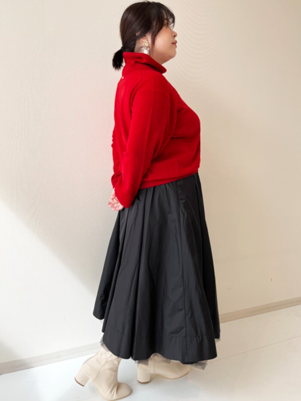 nissen Smile Models(nissen本店models)のニット/セーター「<大きいサイズ>リブネック付クルーネックニットプルオーバー シックスタイル」を使ったコーディネート