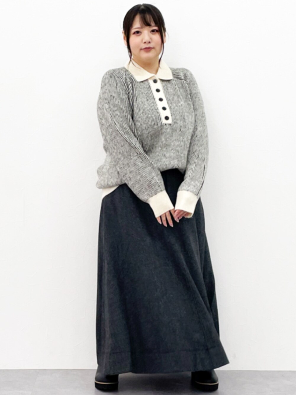 nissen Smile Models(nissen本店models)のスカート「 ツイードフレアマキシスカート <大きいサイズ有>シックスタイル」を使ったコーディネート
