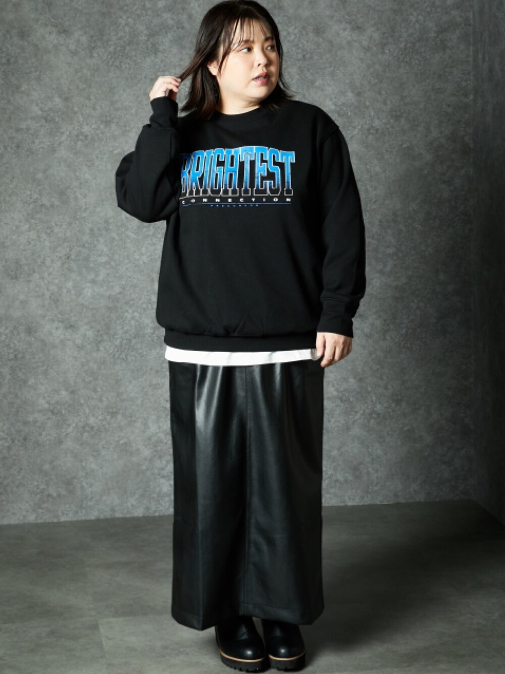 nissen Smile Models(nissen本店models)のスウェット「<大きいサイズ> ロゴプリント裏起毛プルオーバー GEVS.」を使ったコーディネート