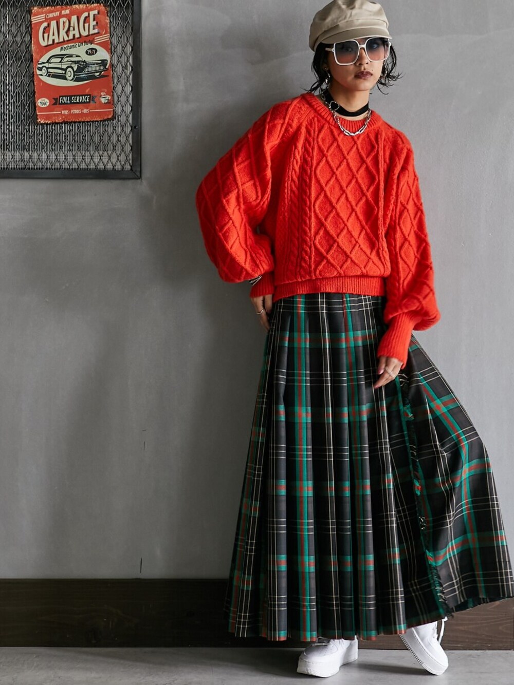 nissen Smile Models(nissen本店models)のスカート「<大きいサイズ> チェックタックマキシスカート GEVS.」を使ったコーディネート