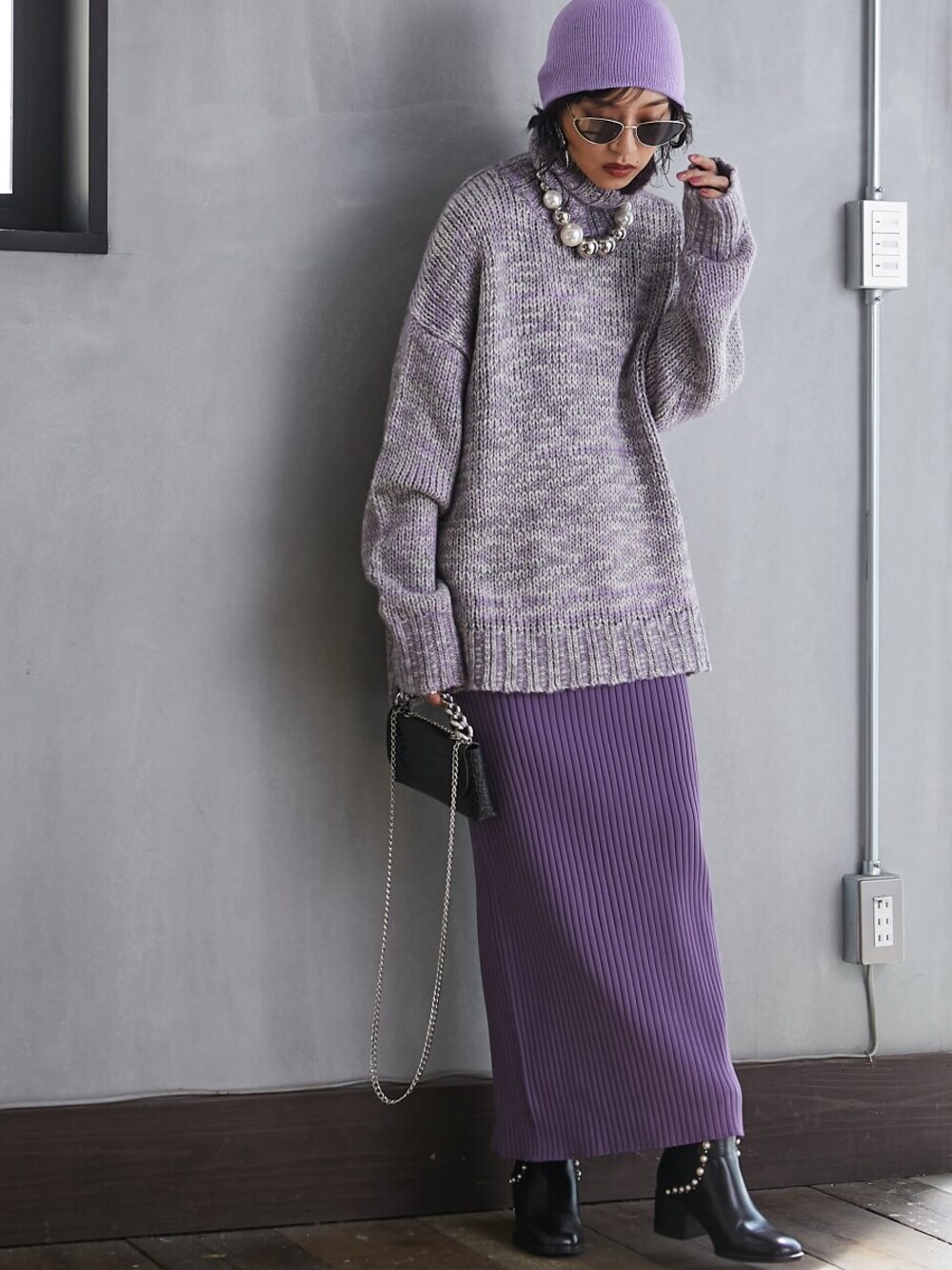 nissen Smile Models(nissen本店models)のスカート「ワイドリブロングニットタイトスカート <大きいサイズ有>GEVS.」を使ったコーディネート