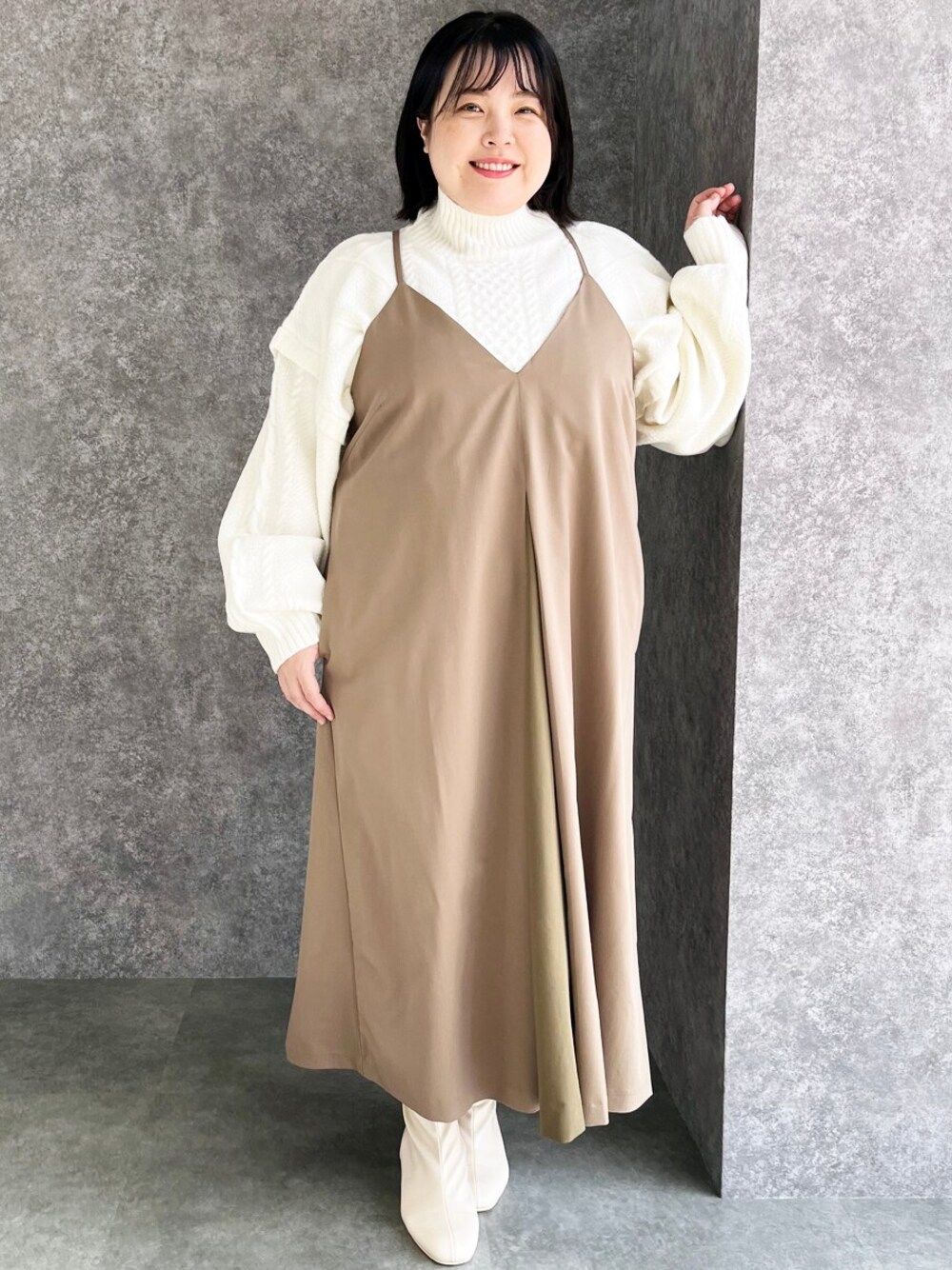 nissen Smile Models(nissen本店models)のワンピース「大きいサイズ タックデザインキャミソールワンピース miclat」を使ったコーディネート