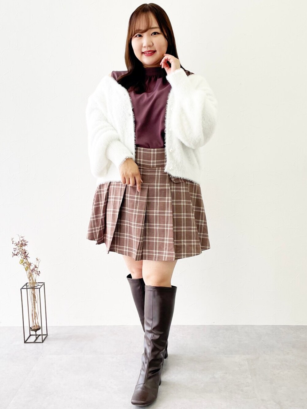 nissen Smile Models(nissen本店models)のカーディガン/ボレロ「<大きいサイズ> パール調ボタン付きシャギーニットカーディガン marun」を使ったコーディネート