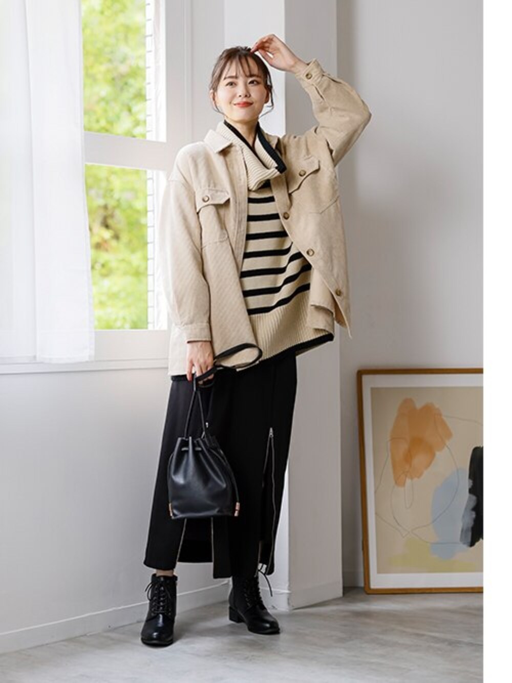 ラージサイズ商品のコーディネート例です。誘導先商品のサイズ展開がモデル着用サイズと異なる場合がございます。あらかじめご了承ください。