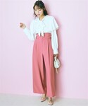 nissen Smile Models(nissen本店models)のシャツ/ブラウス「大きいサイズ フリルボータイブラウス marun」を使ったコーディネート