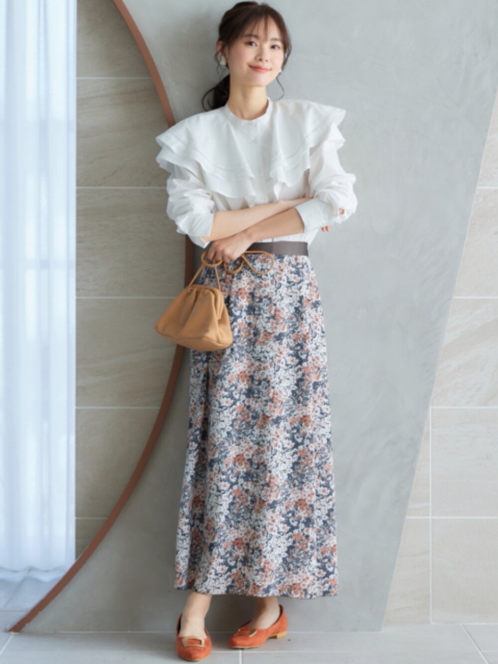 nissen Smile Models(nissen本店models)のスカート「大きいサイズ 花柄スカート miclat」を使ったコーディネート