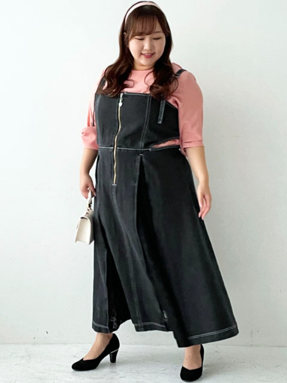 nissen Smile Models(nissen本店models)のワンピース「大きいサイズ デニムジャンパースカート marun」を使ったコーディネート