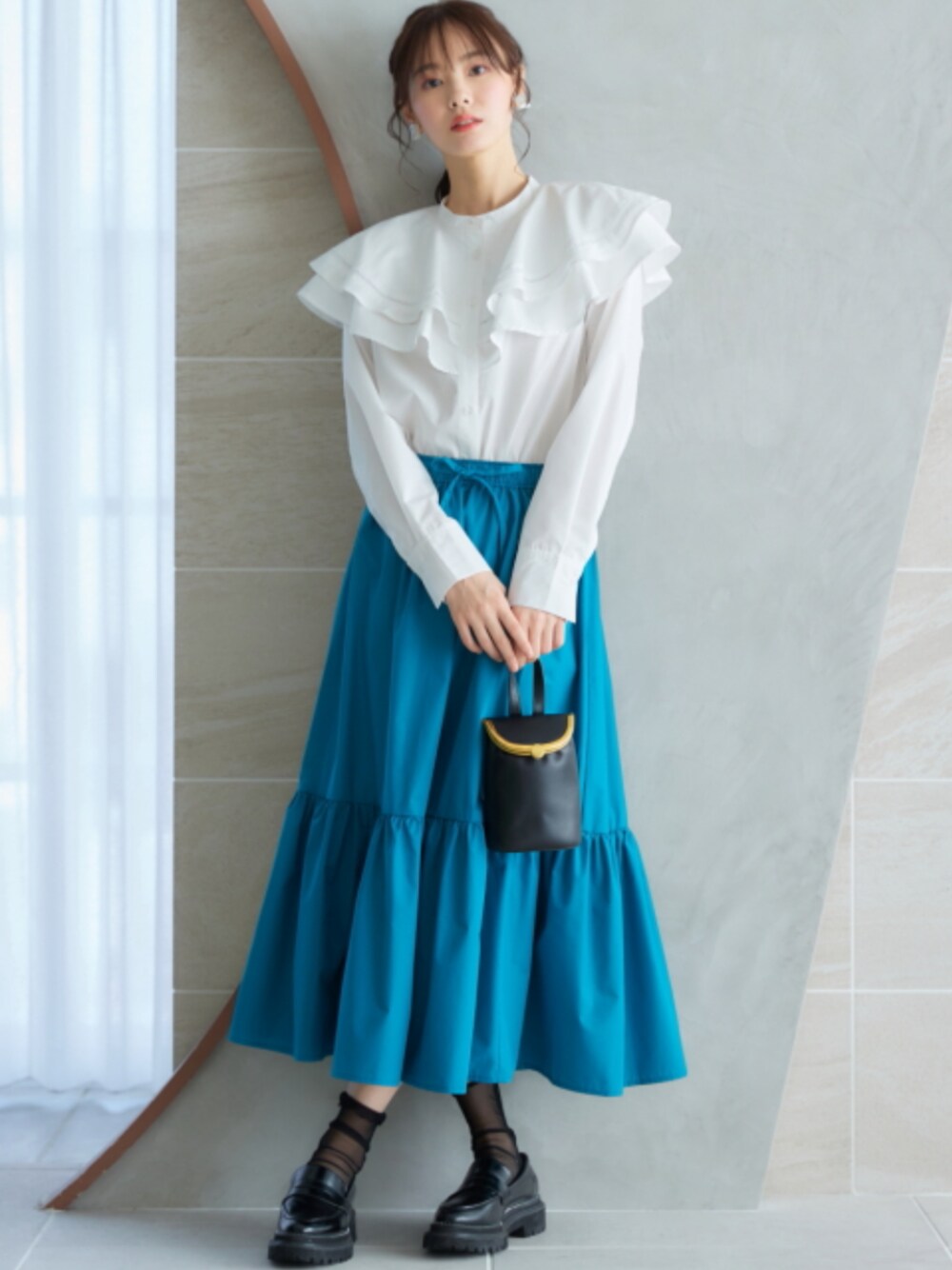 nissen Smile Models(nissen本店models)のシャツ/ブラウス「大きいサイズ ビッグフリルカラーブラウス miclat」を使ったコーディネート