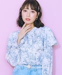 nissen Smile Models(nissen本店models)のシャツ/ブラウス「大きいサイズ 線画花柄プリントブラウス marun」を使ったコーディネート
