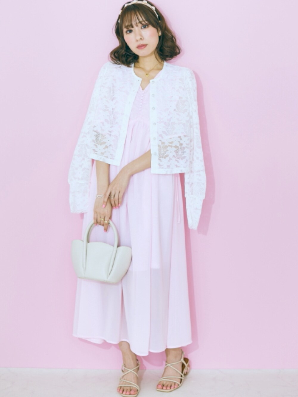 nissen Smile Models(nissen本店models)のワンピース「<大きいサイズ> サイドリボンシフォンワンピース marun」を使ったコーディネート