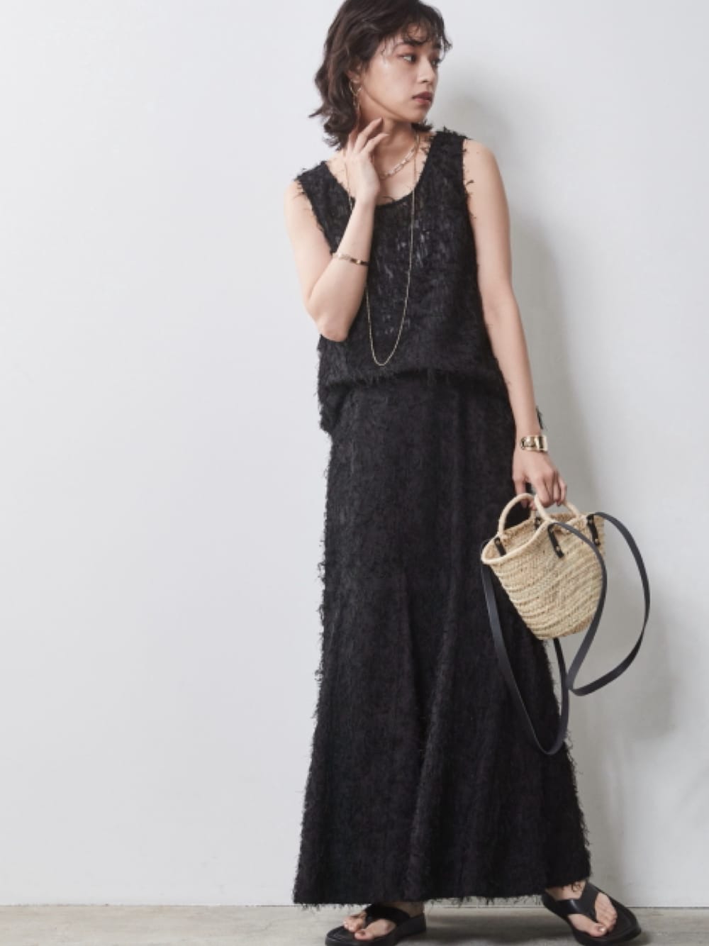 nissen Smile Models(nissen本店models)のキャミソール「<大きいサイズ>フリンジジャガードノースリーブトップス シックスタイル」を使ったコーディネート