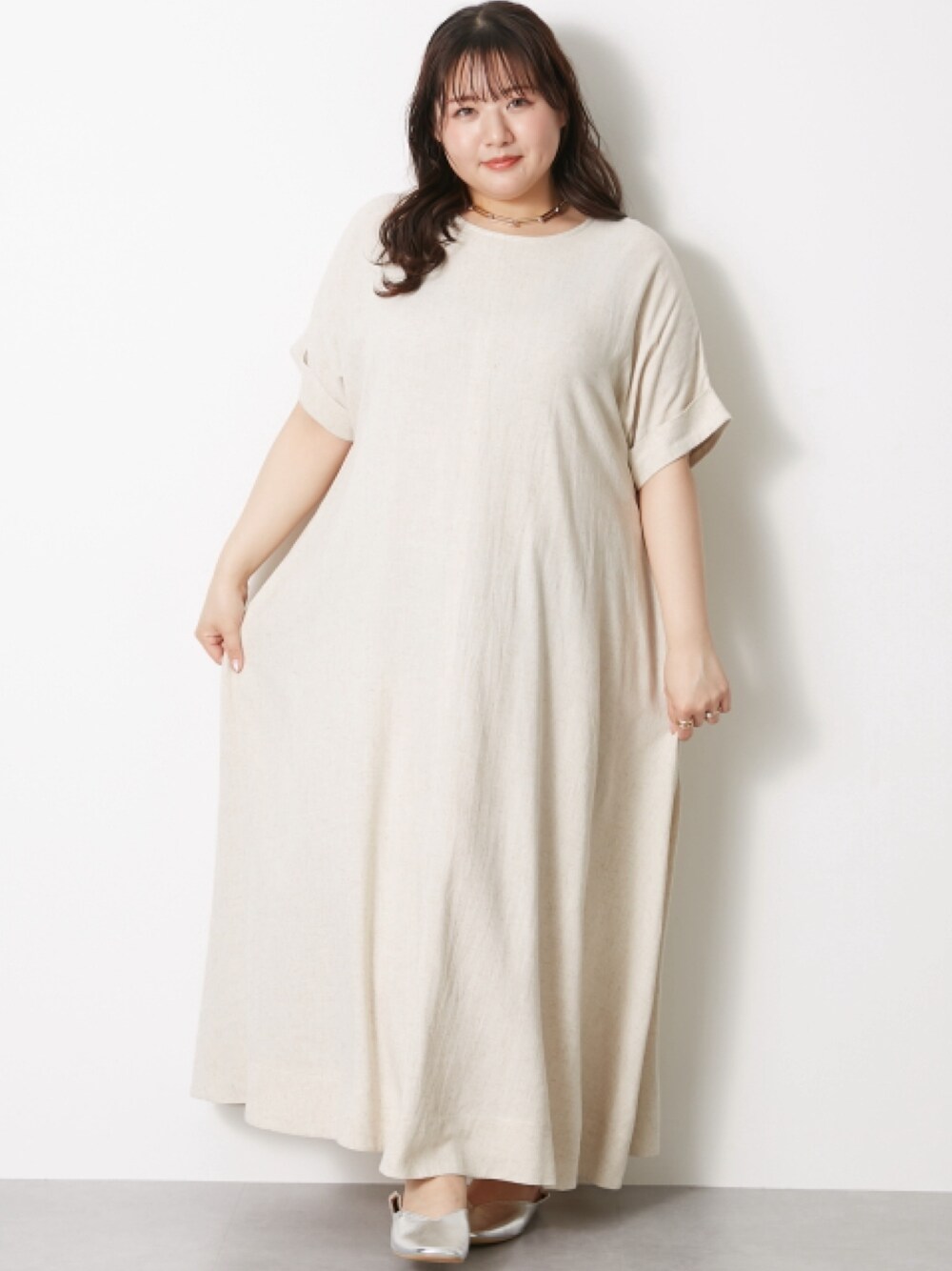 nissen Smile Models(nissen本店models)のワンピース「<大きいサイズ>フレンチスリーブAラインマキシワンピース シックスタイル」を使ったコーディネート
