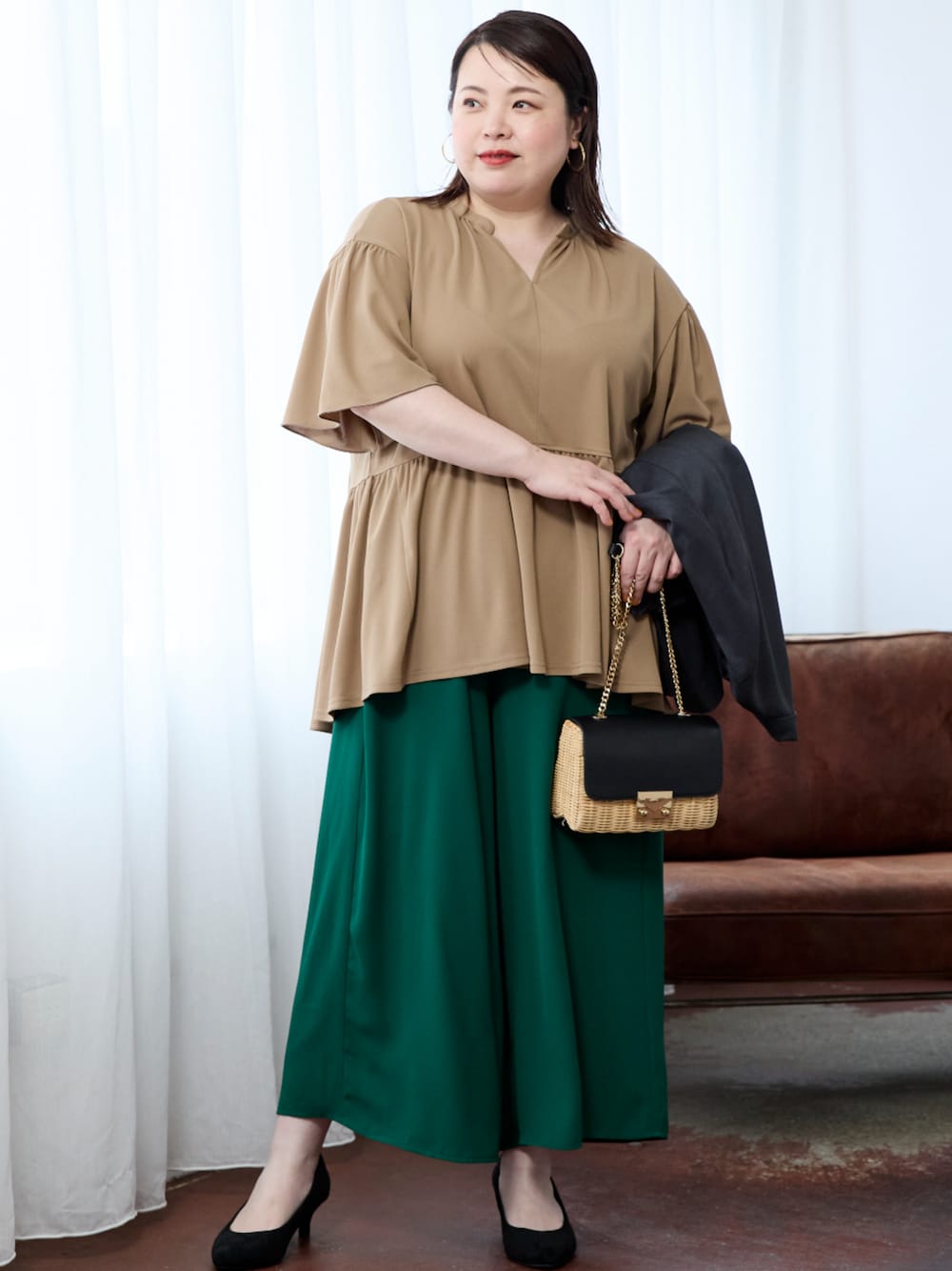 nissen Smile Models(nissen本店models)のテーラードジャケット「大きいサイズ リネンライクテーラードジャケット(抗菌防臭テープ付き)」を使ったコーディネート