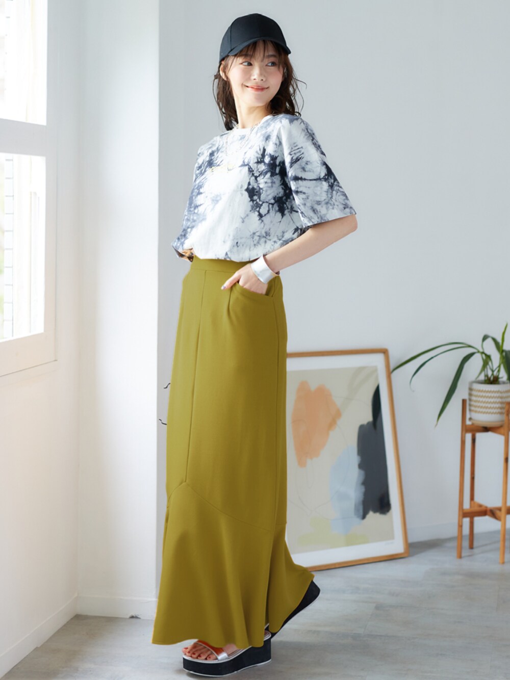 nissen Smile Models(nissen本店models)のスカート「<大きいサイズ> よく伸びるやわらかマーメイドスカート(ゆったりヒップ)」を使ったコーディネート