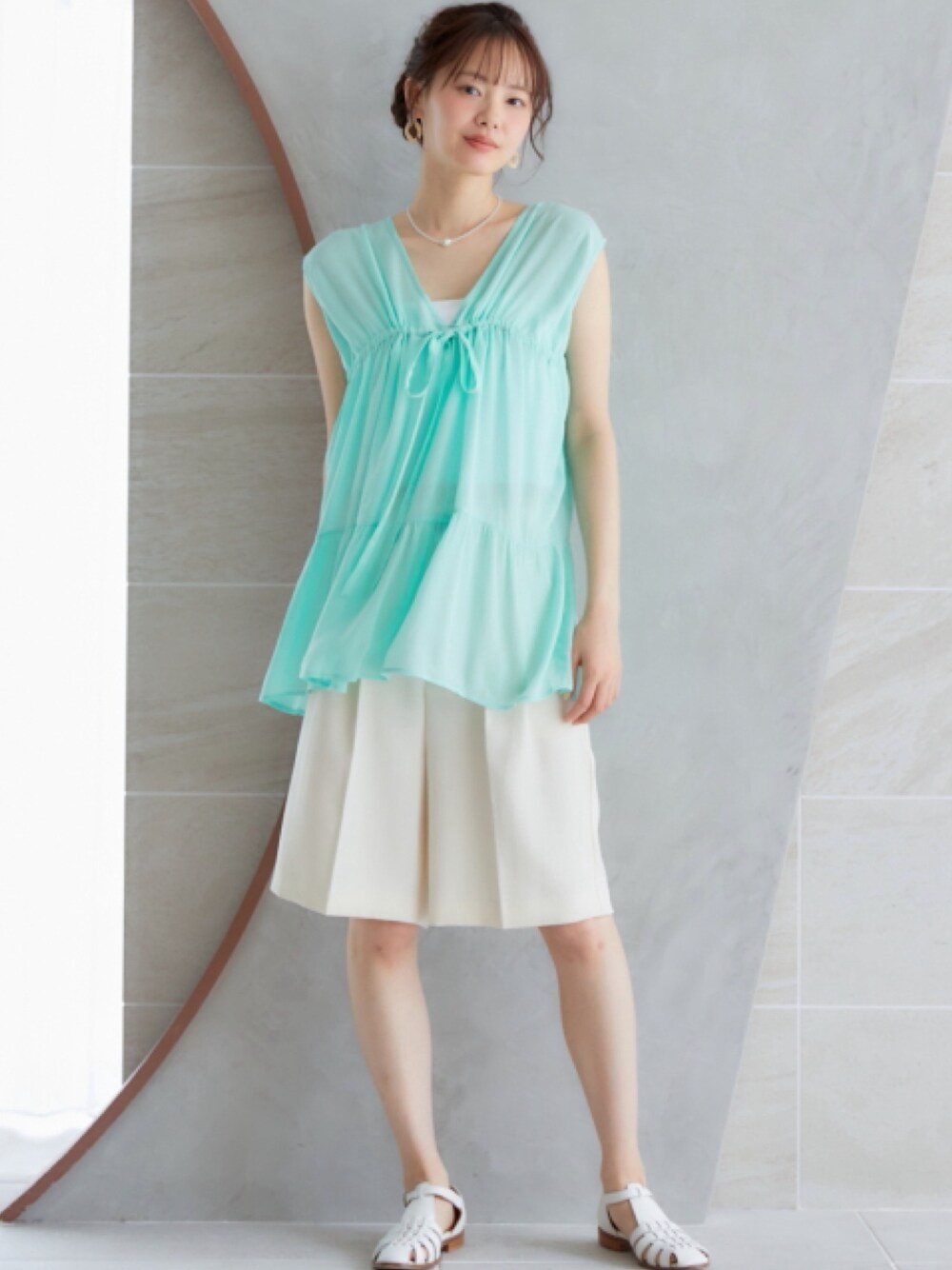 nissen Smile Models(nissen本店models)のキャミソール「大きいサイズ リブチューブトップ miclat」を使ったコーディネート