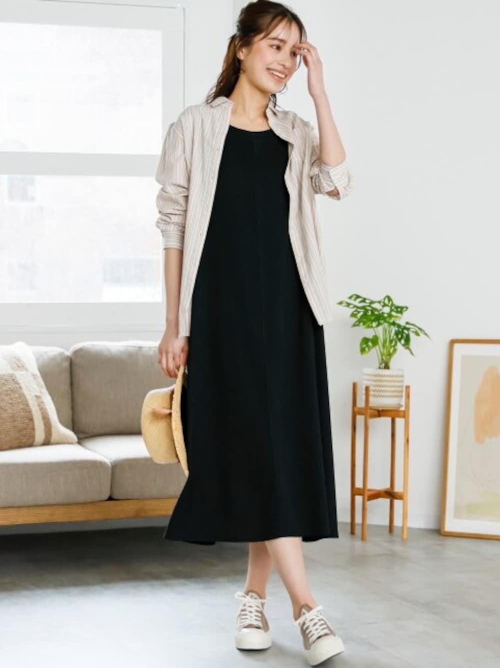 nissen Smile Models(nissen本店models)のワンピース「大きいサイズ 涼しいサラサラカットソー楊柳ノースリーブワンピース(ロング丈)」を使ったコーディネート
