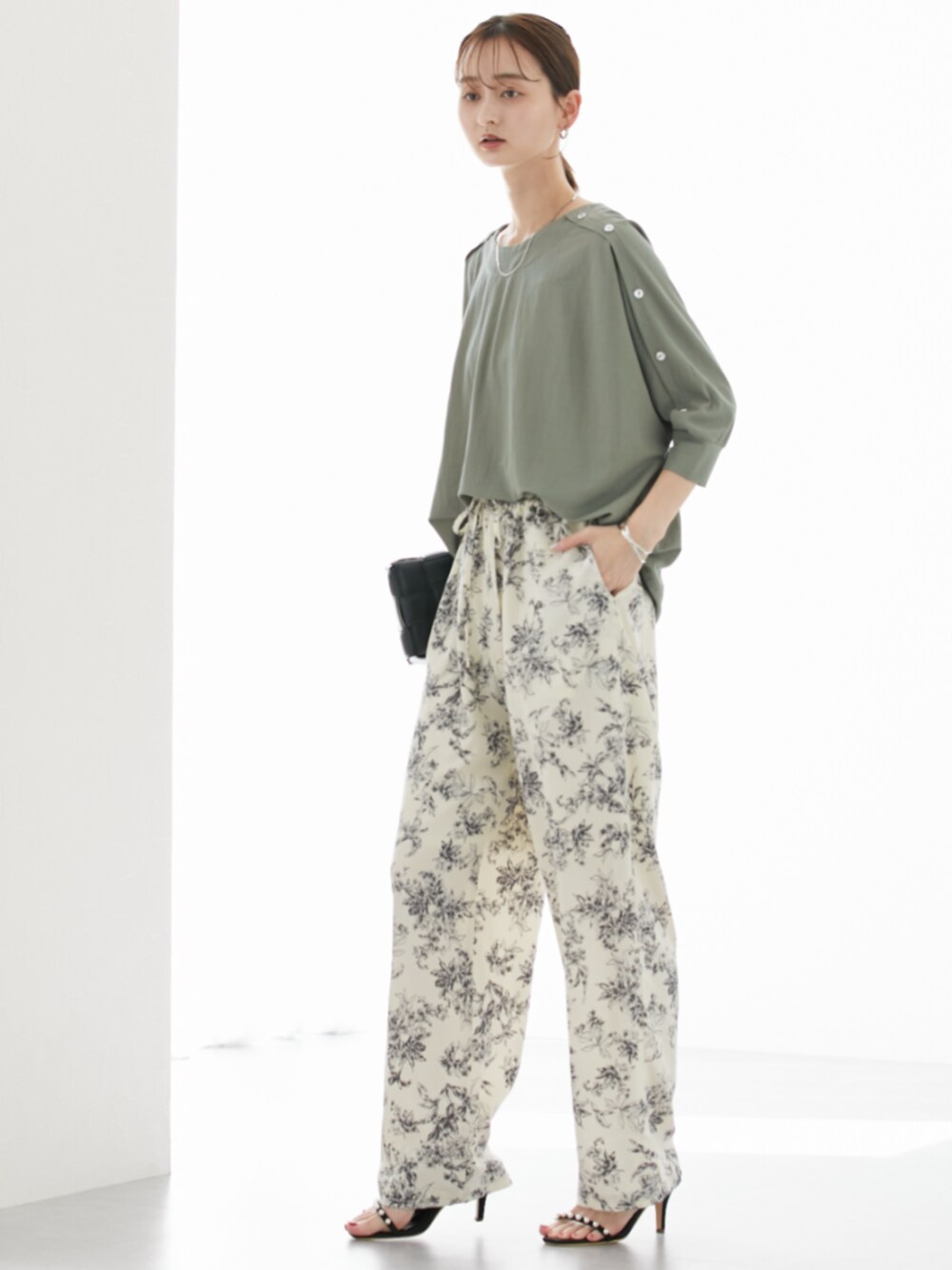 nissen Smile Models(nissen本店models)のパンツ「大きいサイズ 花柄プリントイージーパンツ(ゆったりヒップ)」を使ったコーディネート