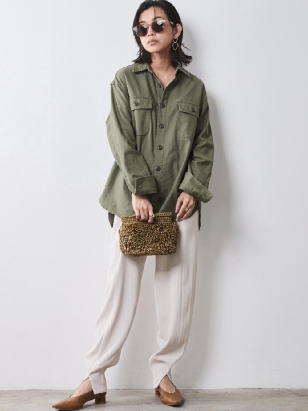 nissen Smile Models(nissen本店models)のシャツ/ブラウス「 バックサテンミリタリーシャツ <大きいサイズ有>シックスタイル 」を使ったコーディネート