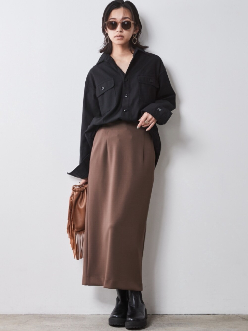 nissen Smile Models(nissen本店models)のシャツ/ブラウス「 バックサテンミリタリーシャツ <大きいサイズ有>シックスタイル 」を使ったコーディネート