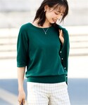 nissen Smile Models(nissen本店models)のニット/セーター「大きいサイズ [優しい肌触りのド定番シリーズ]5分袖ニット(アンサンブル可)」を使ったコーディネート