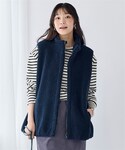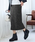 nissen Smile Models(nissen本店models)のTシャツ/カットソー「<大きいサイズ>長袖ボートネックリップルボーダーゆるカットソートップス」を使ったコーディネート
