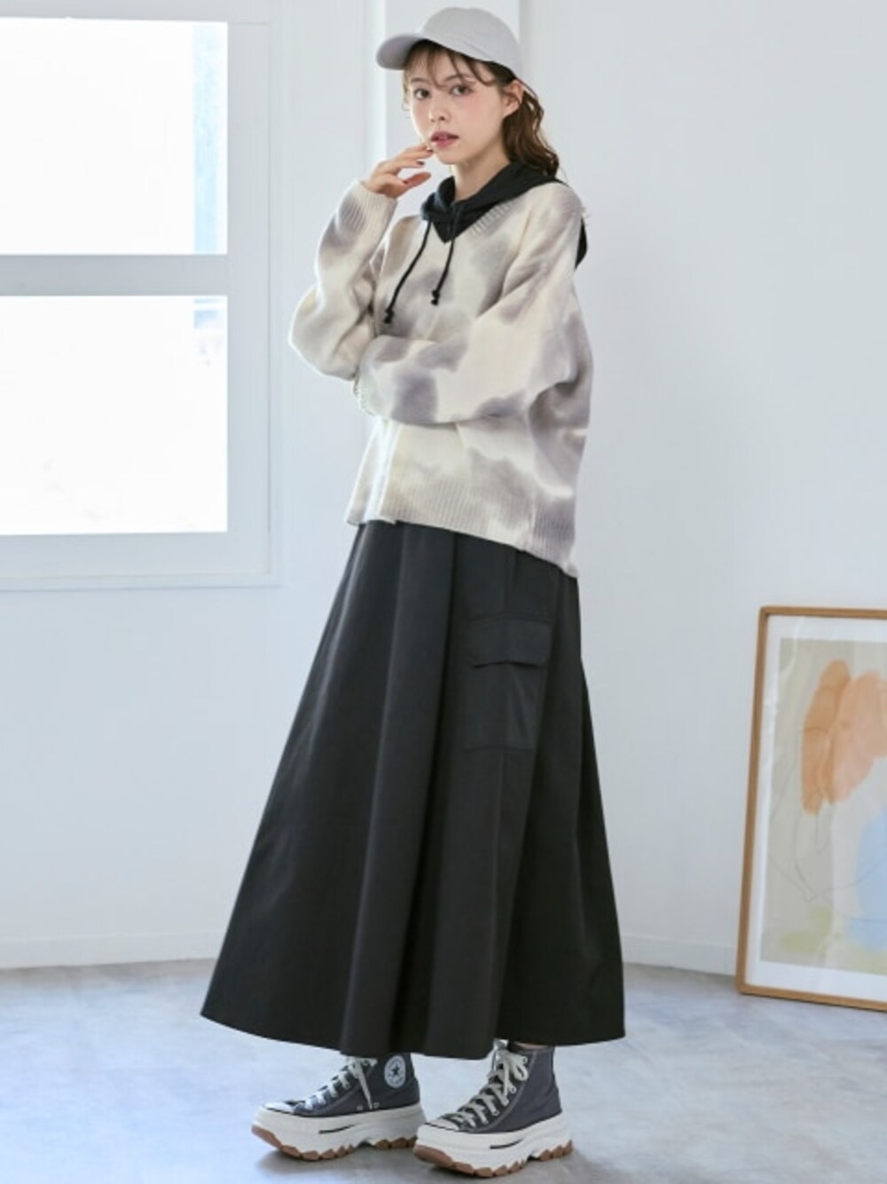 ラージサイズ商品のコーディネート例です。誘導先商品のサイズ展開がモデル着用サイズと異なる場合がございます。あらかじめご了承ください。