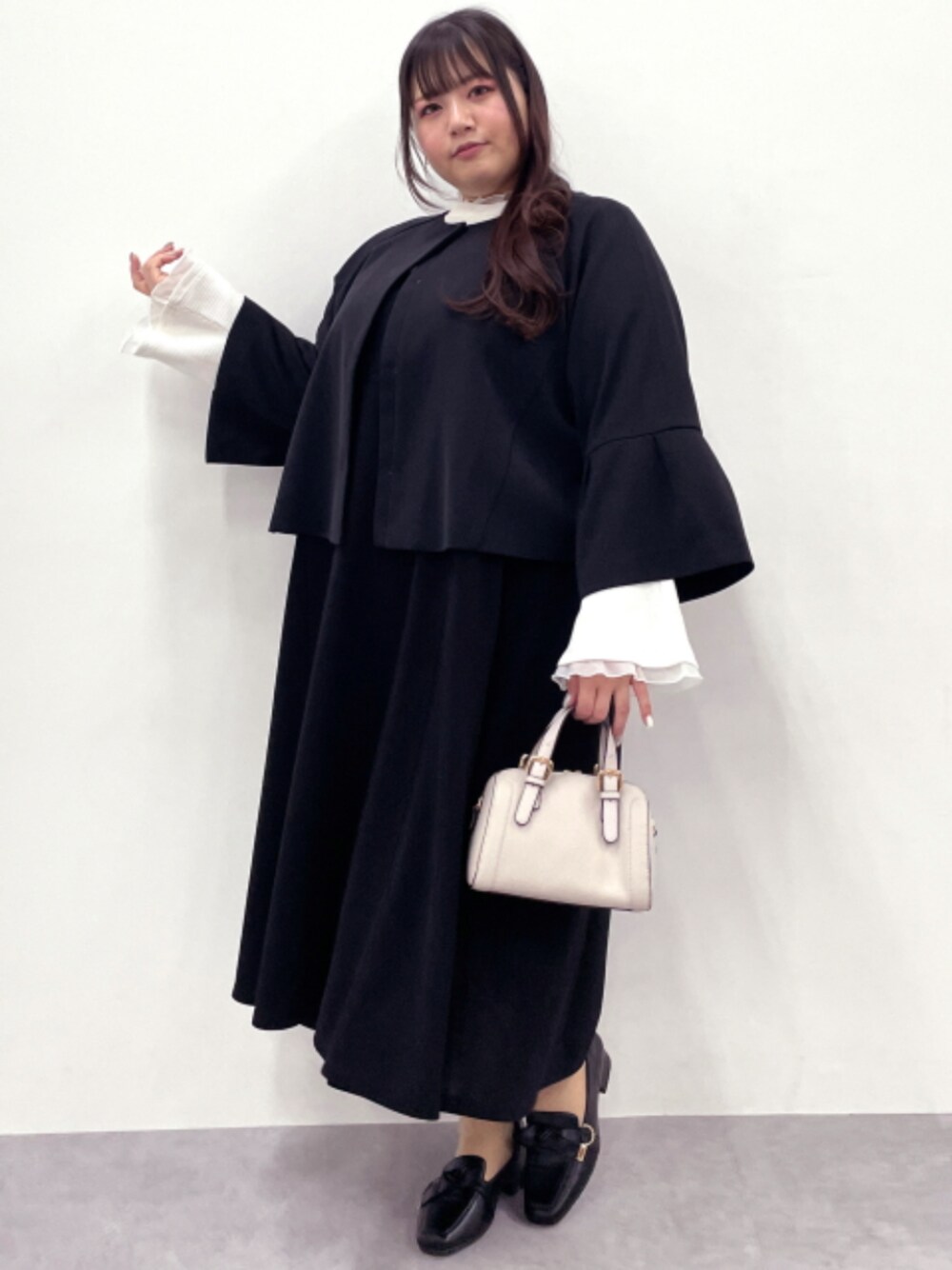 nissen Smile Models(nissen本店models)のTシャツ/カットソー「<大きいサイズ>チュールドッキングフレアトップス marun」を使ったコーディネート