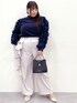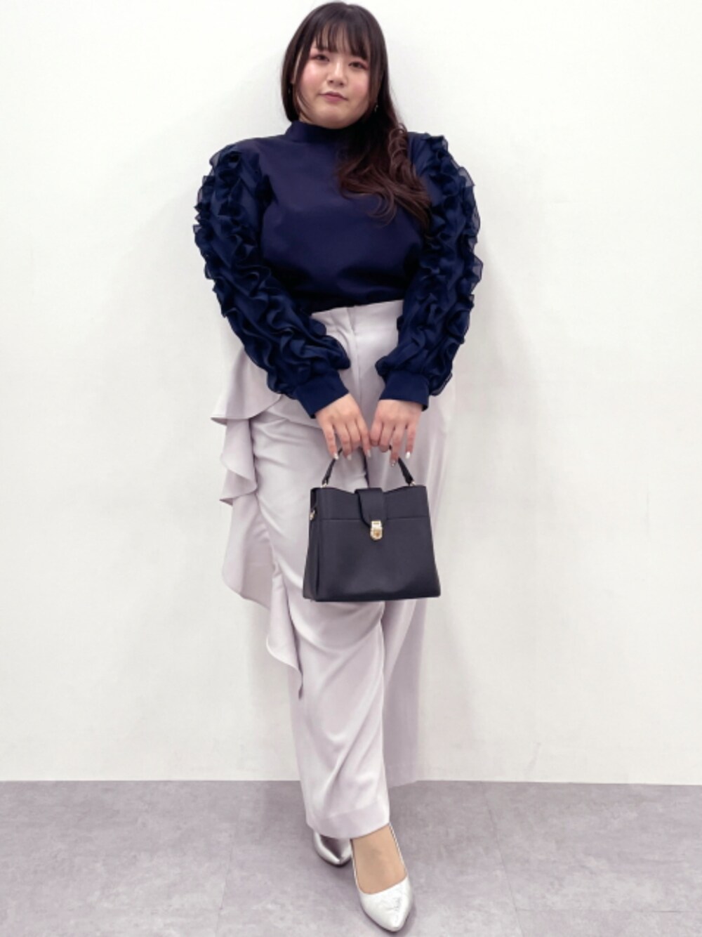 nissen Smile Models(nissen本店models)のTシャツ/カットソー「<大きいサイズ>袖ボリュームカットソー marun」を使ったコーディネート
