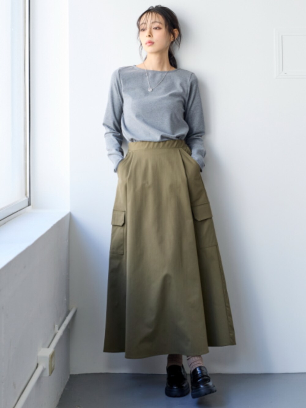 nissen Smile Models(nissen本店models)のTシャツ/カットソー「<大きいサイズ>UVカット綿100%フライス素材ボートネックTシャツ」を使ったコーディネート