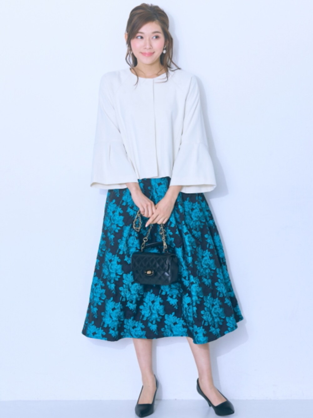 nissen Smile Models(nissen本店models)のスカート「アシメタックジャガードスカート<大きいサイズ有>【Hana服】」を使ったコーディネート