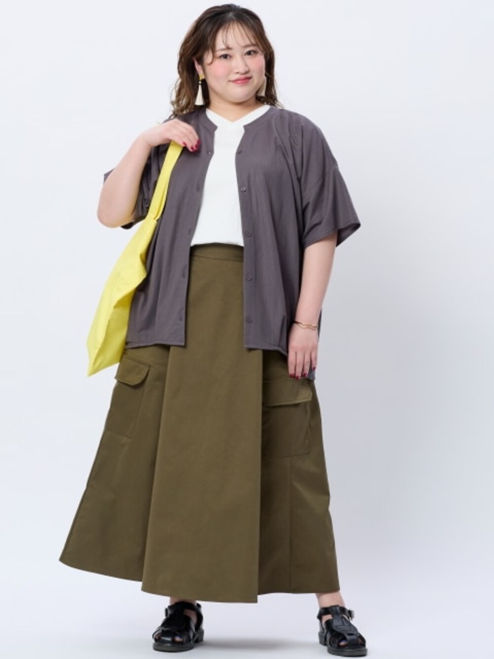 ラージサイズ商品のコーディネート例です。誘導先商品のサイズ展開がモデル着用サイズと異なる場合がございます。あらかじめご了承ください。