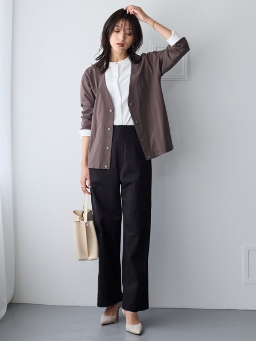 ラージサイズ商品のコーディネート例です。誘導先商品のサイズ展開がモデル着用サイズと異なる場合がございます。あらかじめご了承ください。