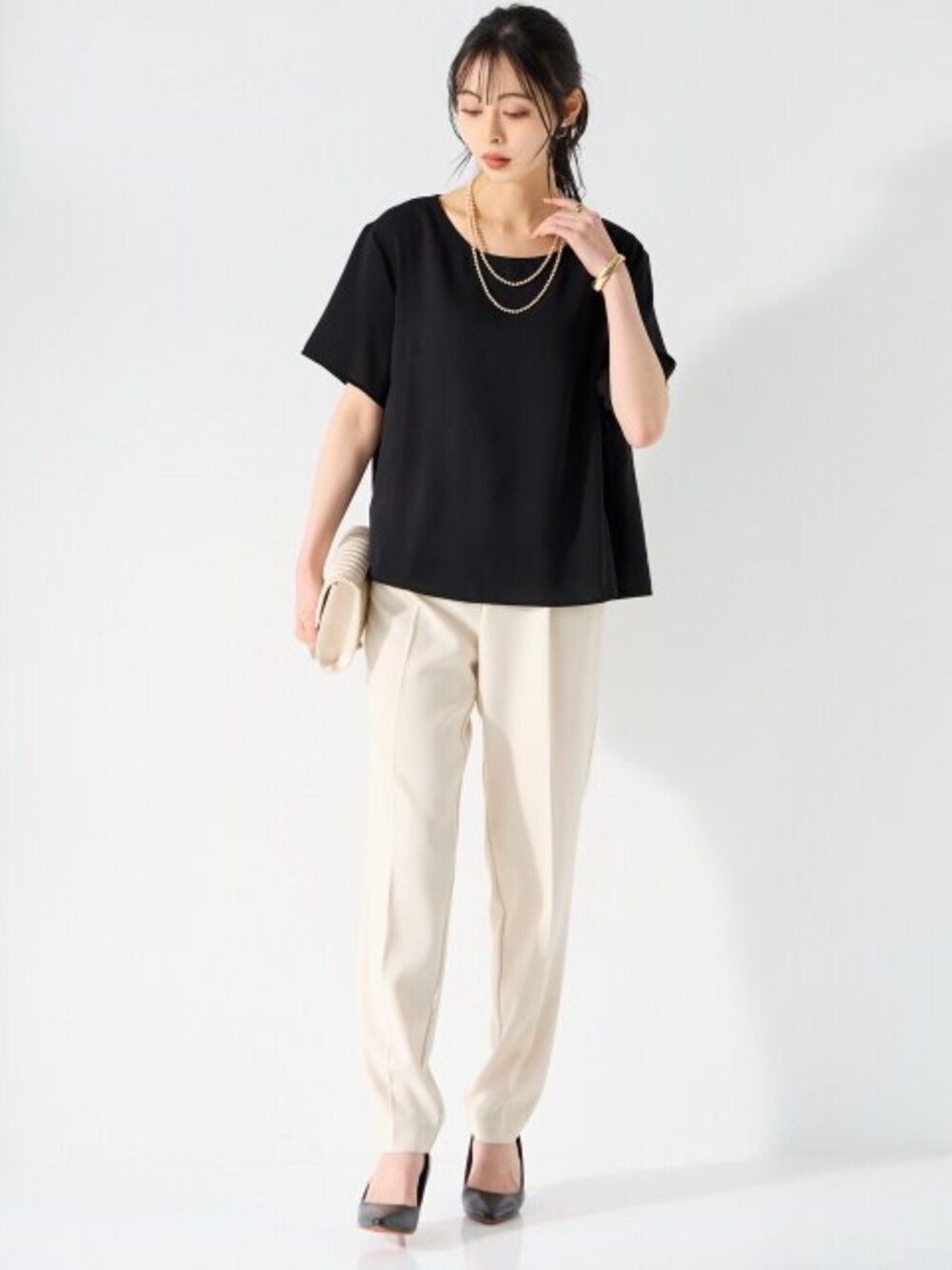ラージサイズ商品のコーディネート例です。誘導先商品のサイズ展開がモデル着用サイズと異なる場合がございます。あらかじめご了承ください。
