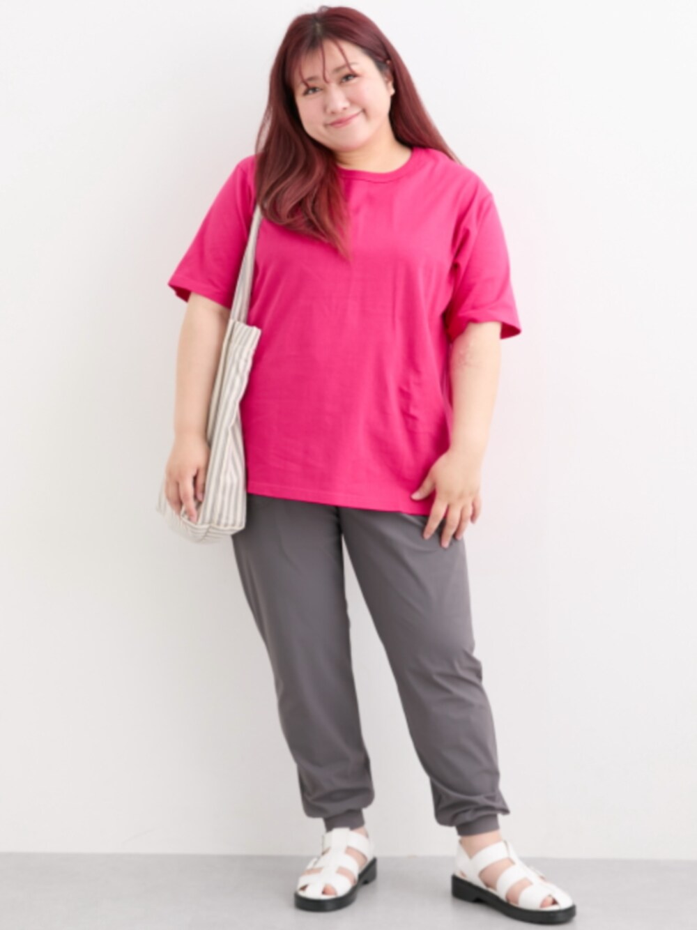 nissen Smile Models(nissen本店models)のTシャツ/カットソー「綿100%汗染みしにくいクルーネック5分袖Tシャツ<大きいサイズ有>」を使ったコーディネート