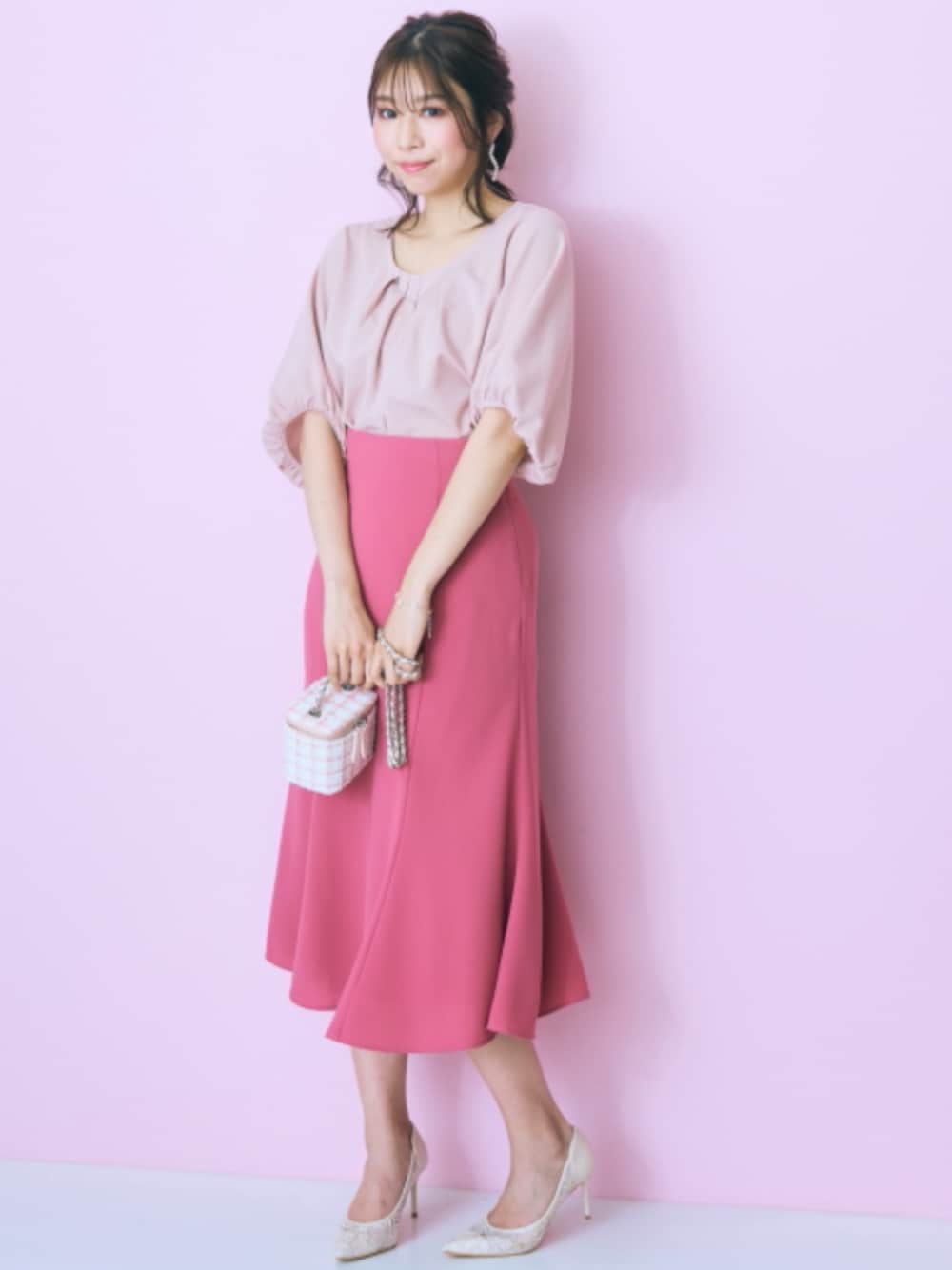 nissen Smile Models(nissen本店models)のスカート「<大きいサイズ>ハイウエストレースアップマーメードスカート marun」を使ったコーディネート