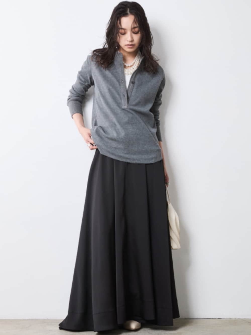 nissen Smile Models(nissen本店models)のネックレス「後チャーム付3連パール調ネックレス(長め設計) シックスタイル」を使ったコーディネート