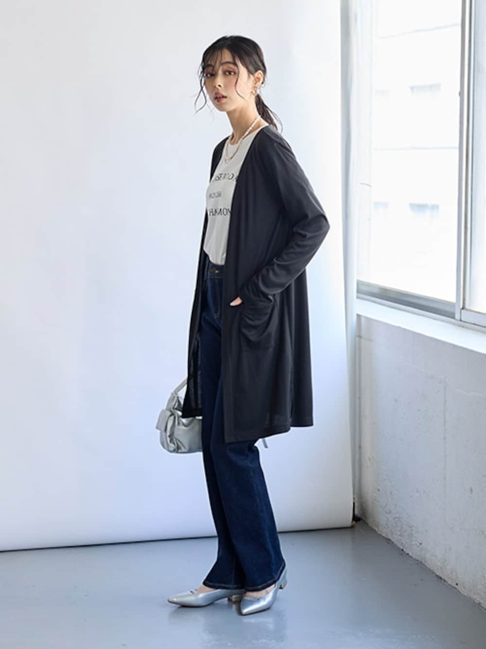 nissen Smile Models(nissen本店models)のカーディガン/ボレロ「大きいサイズ カットソーロングカーディガン」を使ったコーディネート