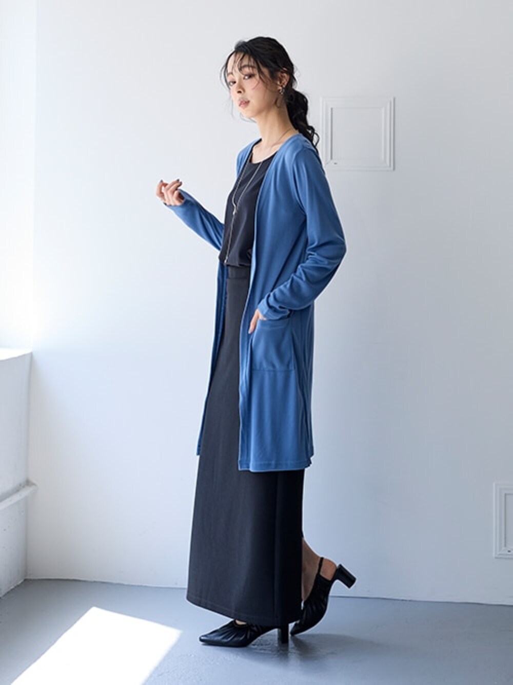 nissen Smile Models(nissen本店models)のスカート「きれいめカットツイル素材ロングナロースカート(毛玉・静電気防止)【セットアップ可能】<大きいサイズ有>」を使ったコーディネート
