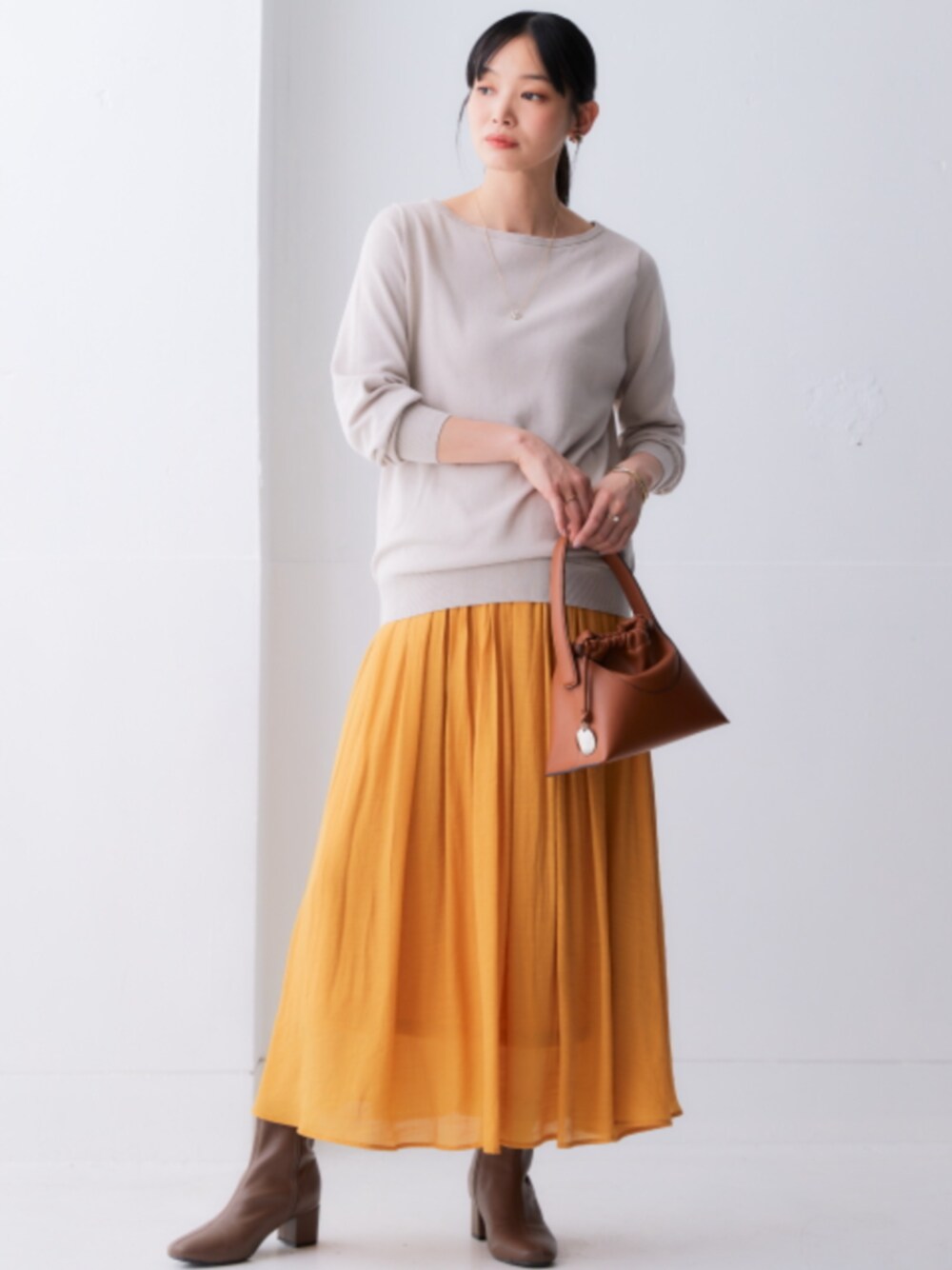 nissen Smile Models(nissen本店models)のスカート「ふわり軽いエアリースラブスカート(選べる2レングス)<大きいサイズ有>」を使ったコーディネート