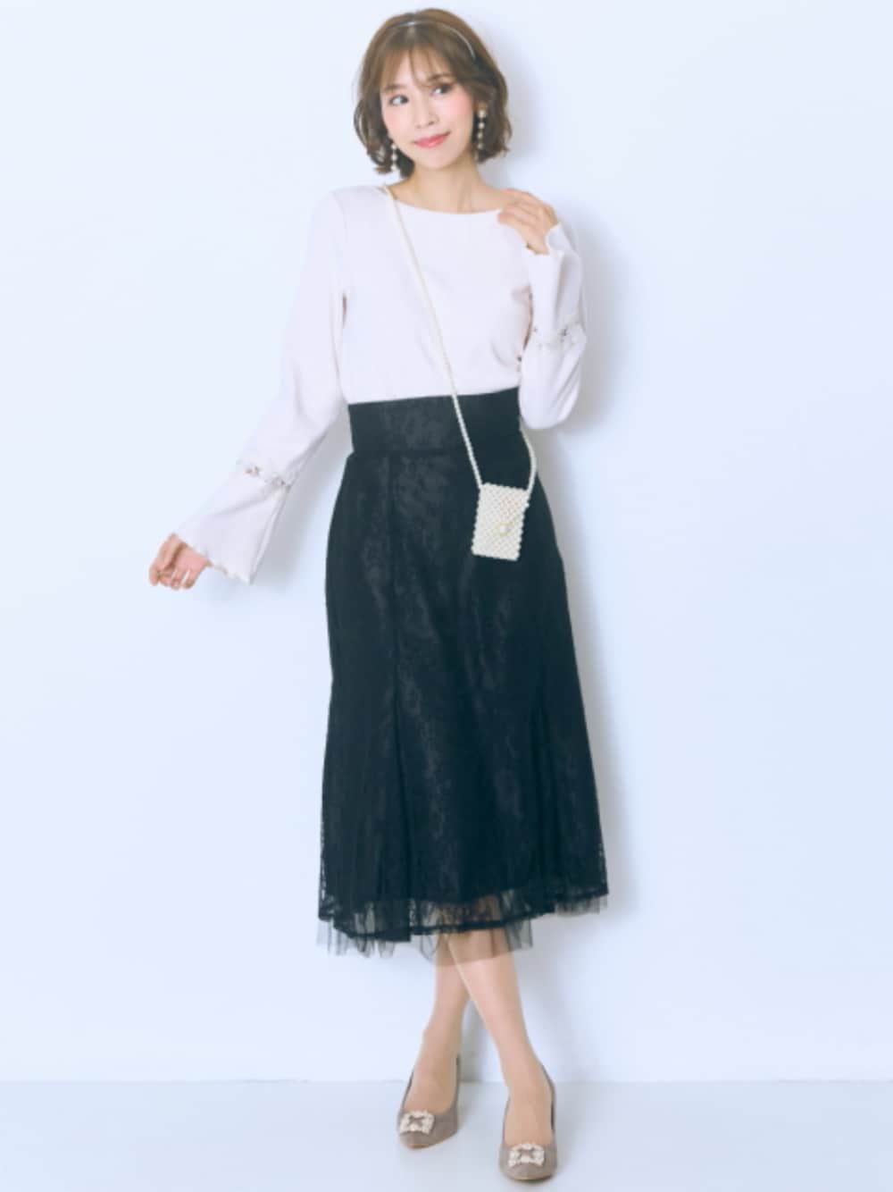 nissen Smile Models(nissen本店models)のスカート「<大きいサイズ>バック編み上げレースマーメイドスカート marun」を使ったコーディネート
