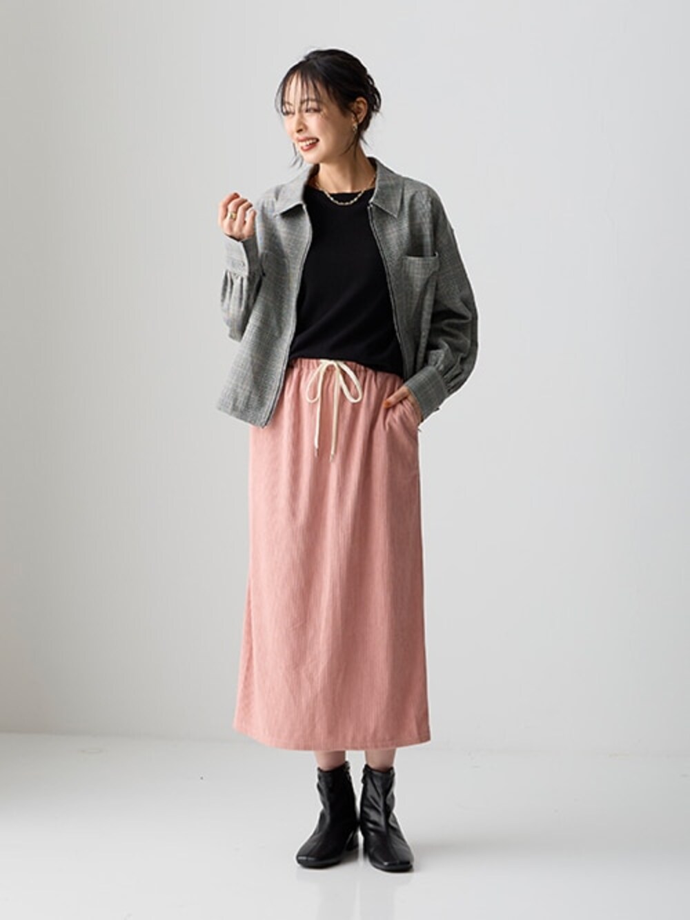 ラージサイズ商品のコーディネート例です。誘導先商品のサイズ展開がモデル着用サイズと異なる場合がございます。あらかじめご了承ください。