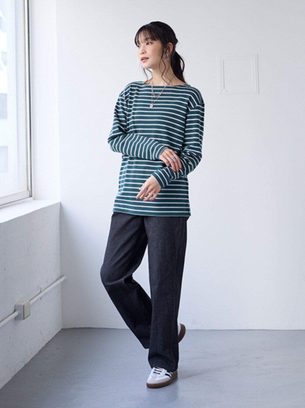 nissen Smile Models(nissen本店models)のパンツ「<大きいサイズ>超ラクチンデニムゆるストレートデニンスパンツ(ゆったりヒップ)(選べる2レングス)」を使ったコーディネート