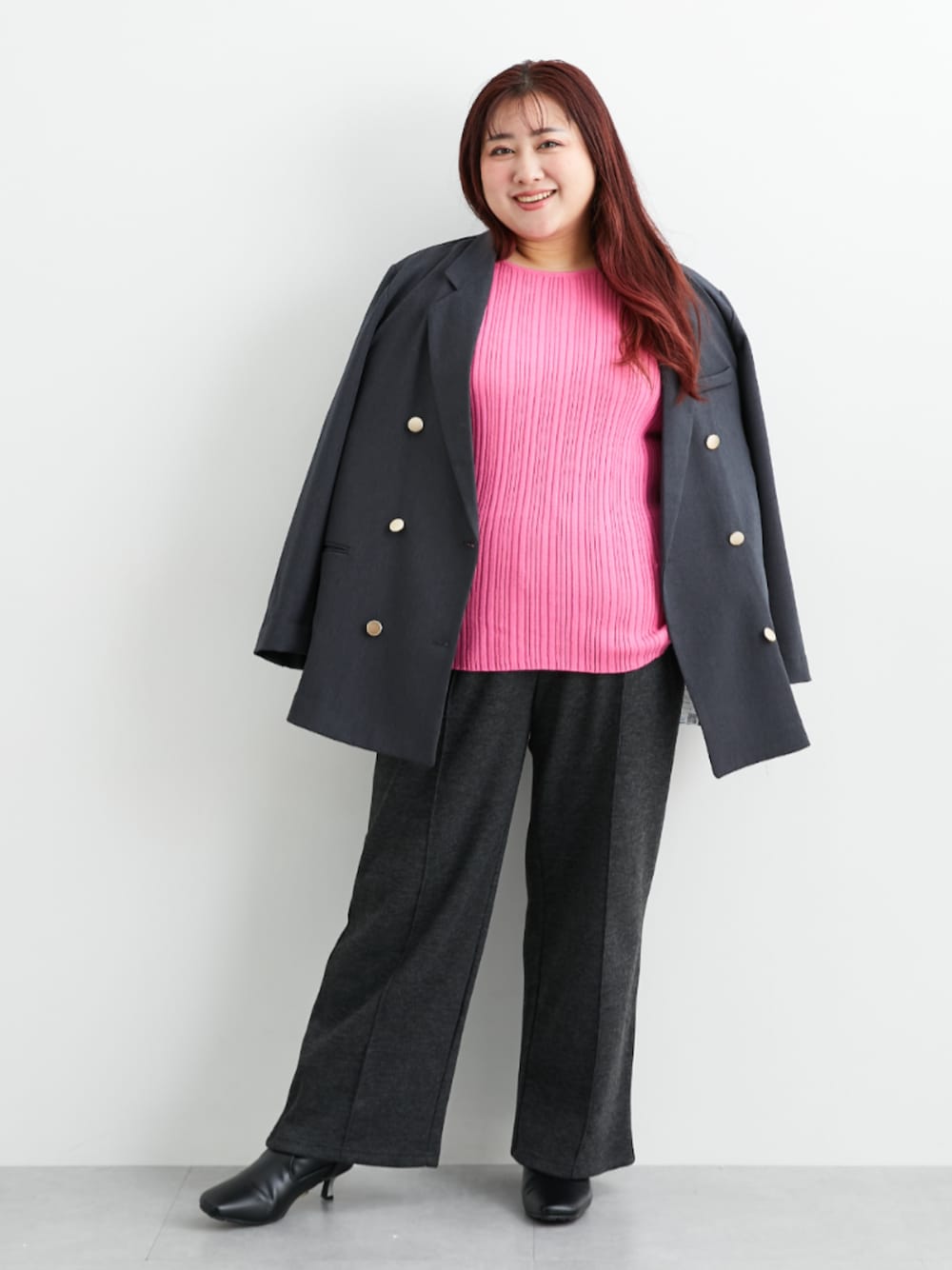 nissen Smile Models(nissen本店models)のスウェットパンツ「メランジ裏ベロアボンディングピンタックワイドパンツ<大きいサイズ有>」を使ったコーディネート