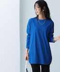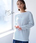 nissen Smile Models(nissen本店models)のTシャツ/カットソー「<大きいサイズ>長袖ボートネックリップルボーダーゆるカットソートップス」を使ったコーディネート